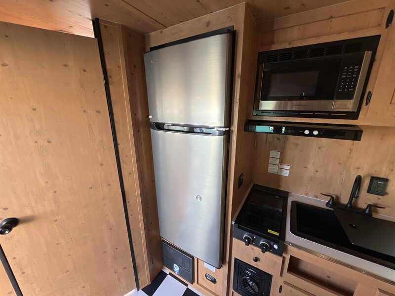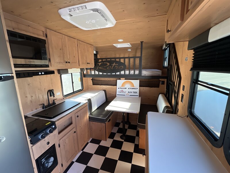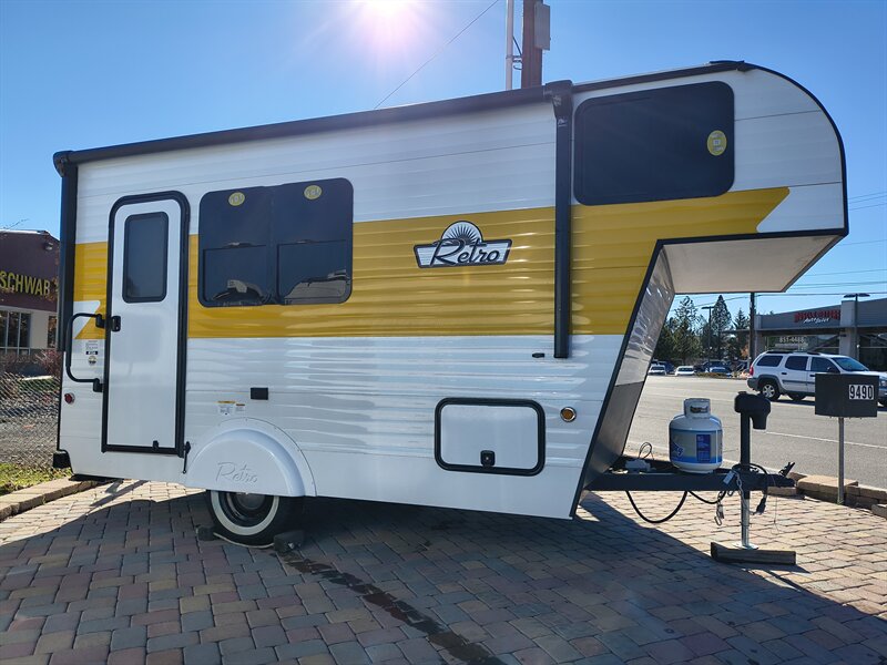New 2026 Sunset Park Retro 136 (Jitterbug) travel trailer. Only 2860 pounds. Loaded with options! Power/lighted awning, two burner stove, 12v refrigerator, microwave, furnace, AC, water heater, outside shower, and much more! Battery, 100w solar panel, and spare tire included! PRICED LESS THAN YOUR GRANDADS OLD RETRO TRAILER! : when adjusted for inflation!!